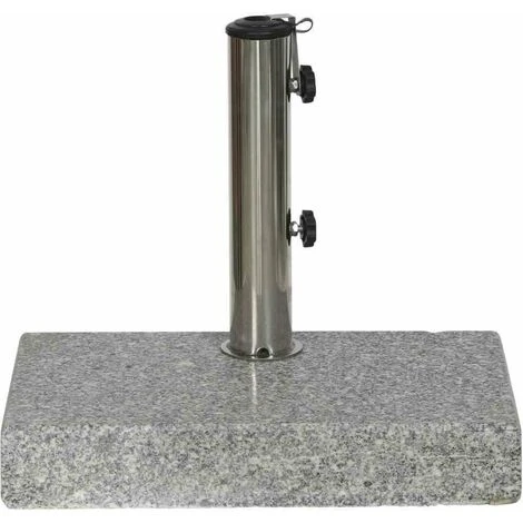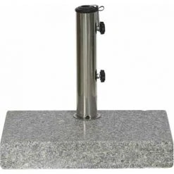 Schirmständer Granit, 25 kg, 45x28x7,5 cm, aus Granit poliert in hellgrau, Rohr aus Edelstahl in silber Edelstahlrohr Ø 5,7 x 29,6 cm mit Verjüngungsstück unten 4-teilige Reduzierstücke für Schirmstöcke Ø 25-48 mm 2 Fixierschrauben polierter Granit z.B. für die Modelle “Tropico”
